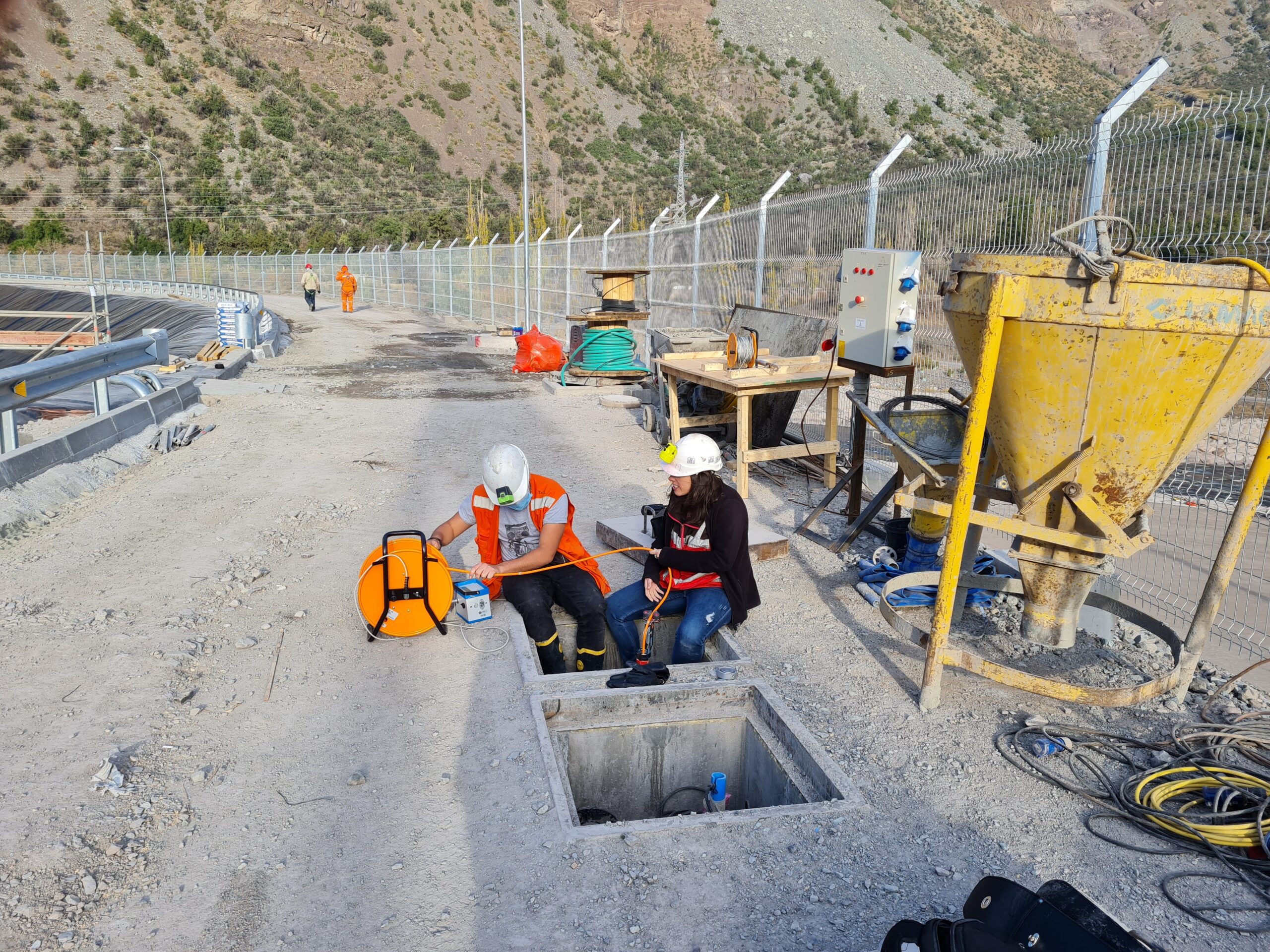 En la cámara de carga del Proyecto Hidroeléctrico Alto Maipo se implementó un sistema de instrumentación para el control de deformaciones y presiones de agua en el muro. El alcance incluyó la instalación de tres tuberías inclinométricas de 45 metros de profundidad, con habilitación y supervisión técnica de perforaciones, y un piezómetro casa grande automatizado con transductor de presión para monitoreo continuo. Las mediciones de inclinómetros se realizan manualmente por el cliente, a quienes se entregó el equipo completo junto con capacitación y acompañamiento técnico, mientras que los tres piezómetros quedaron integrados a un sistema automatizado de registro centralizado, proporcionando datos confiables y precisos sobre la estabilidad de la cámara de carga y su integración con el sistema de monitoreo general del proyecto.